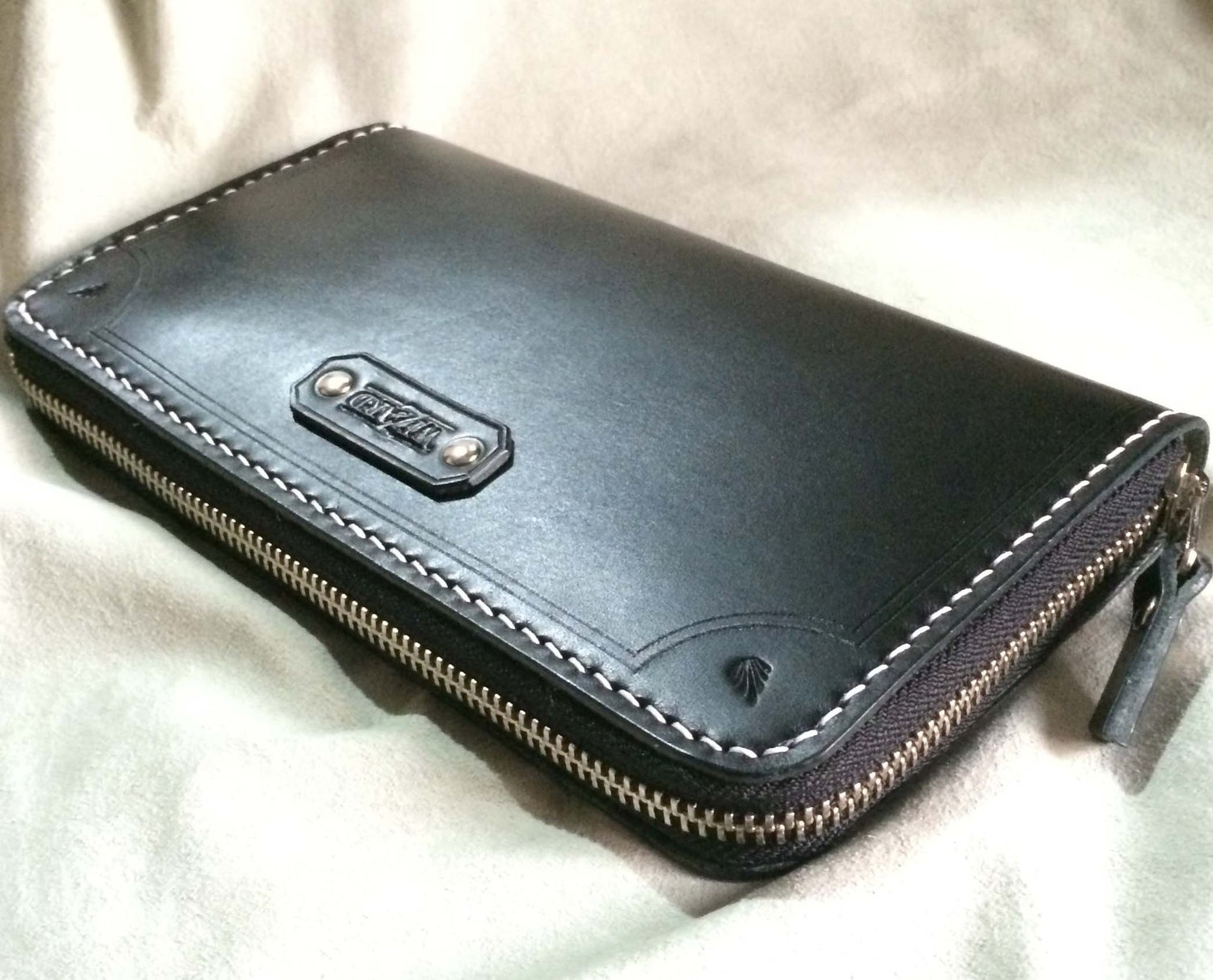 本革で手縫いですので頑丈さはもちろんのこと見た目よりも軽く出来ていますので、たくさん収納する人に是非使っていただきたい大人の革財布です。