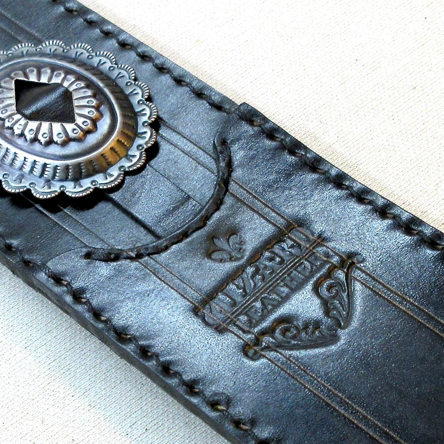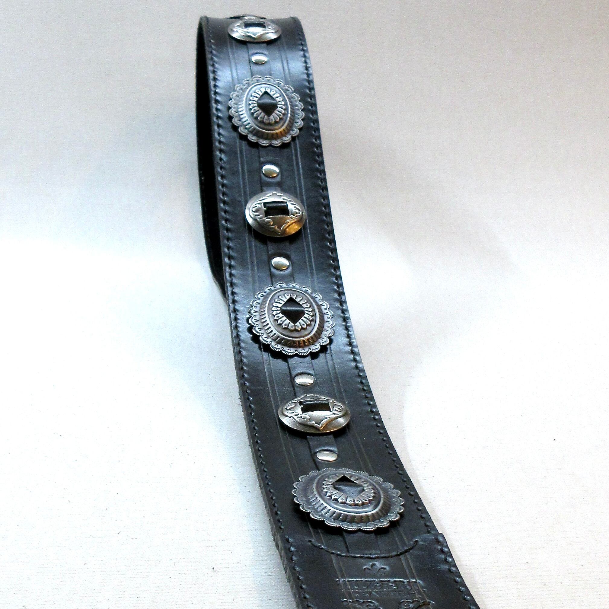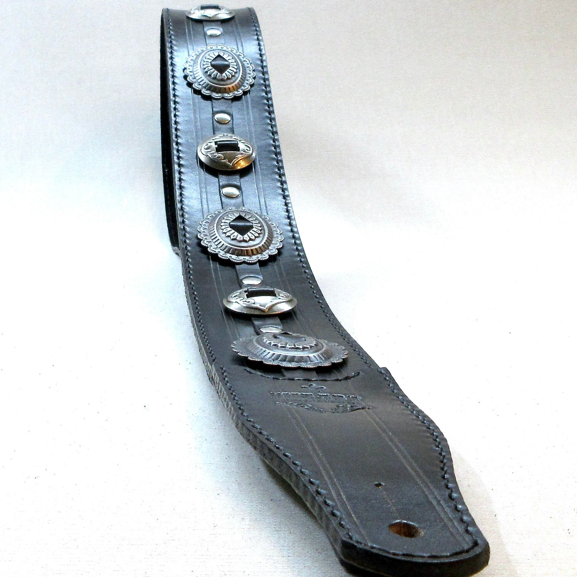 艶を抑えて鈍く光るシルバーのコンチョは、ブラック・レザーと最高の相性を演出します!