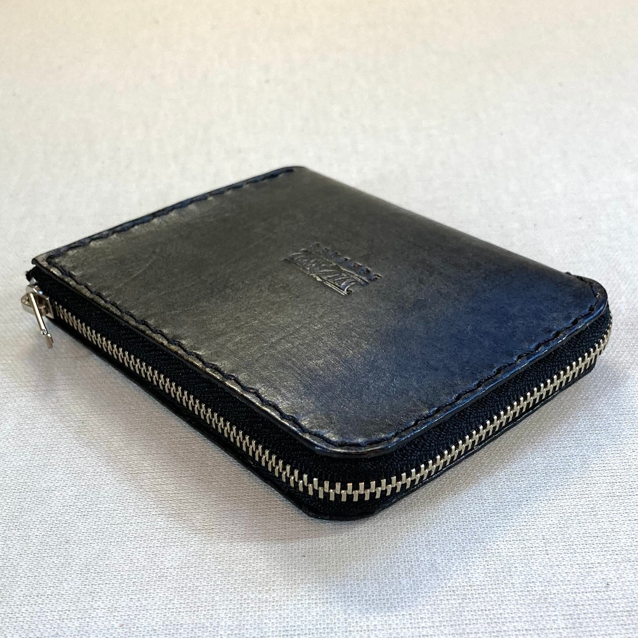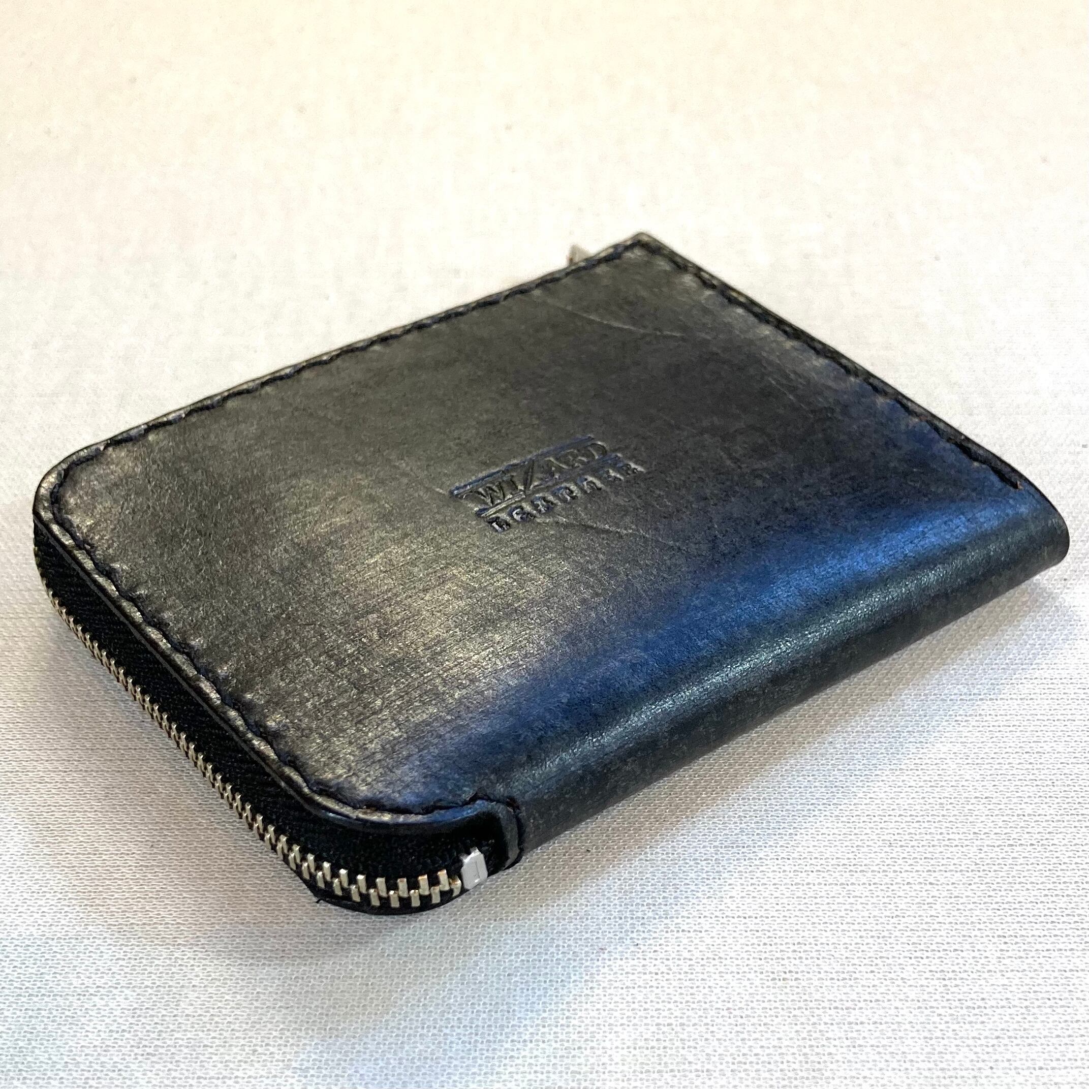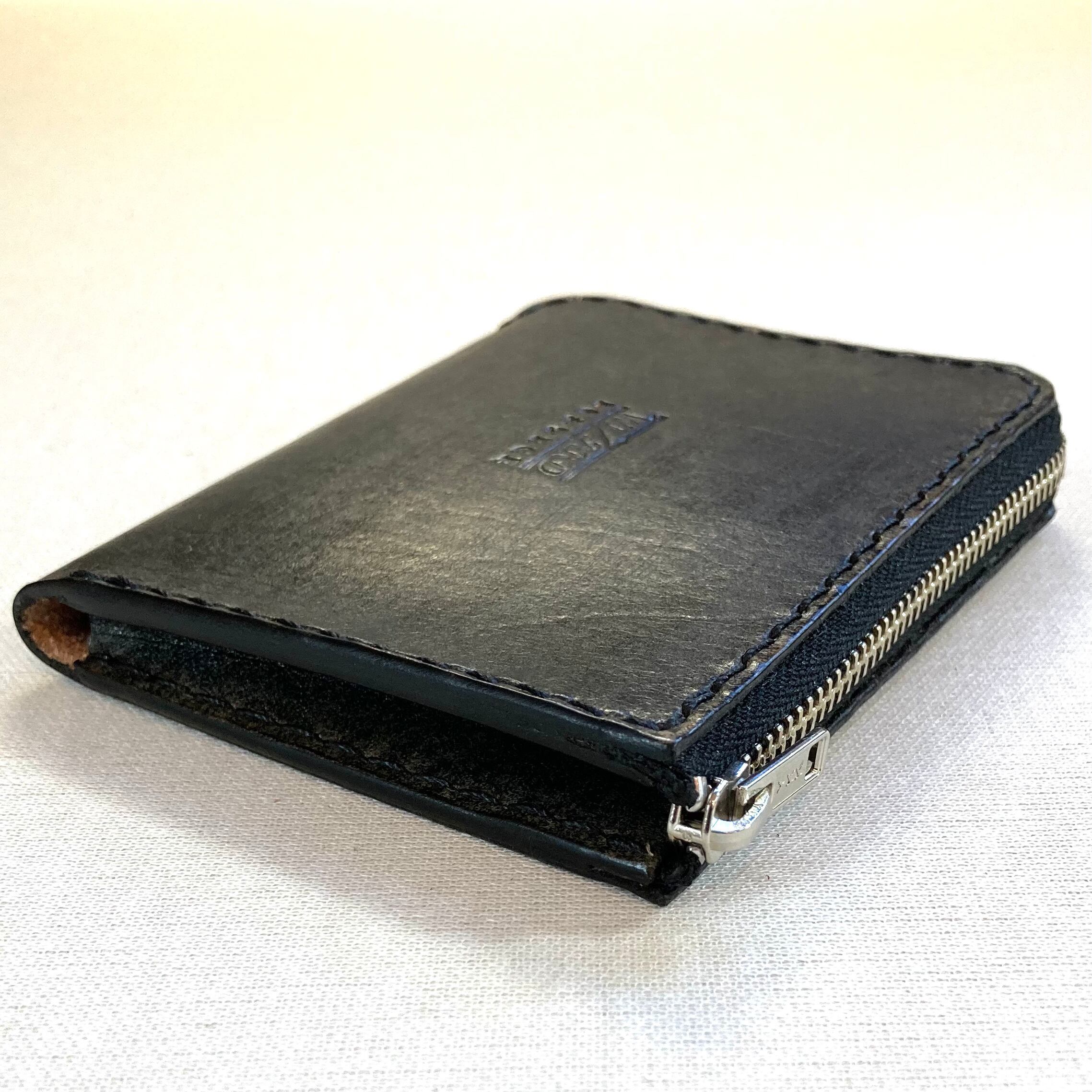 字型のファスナーで使いやすいコンパクトな革財布。