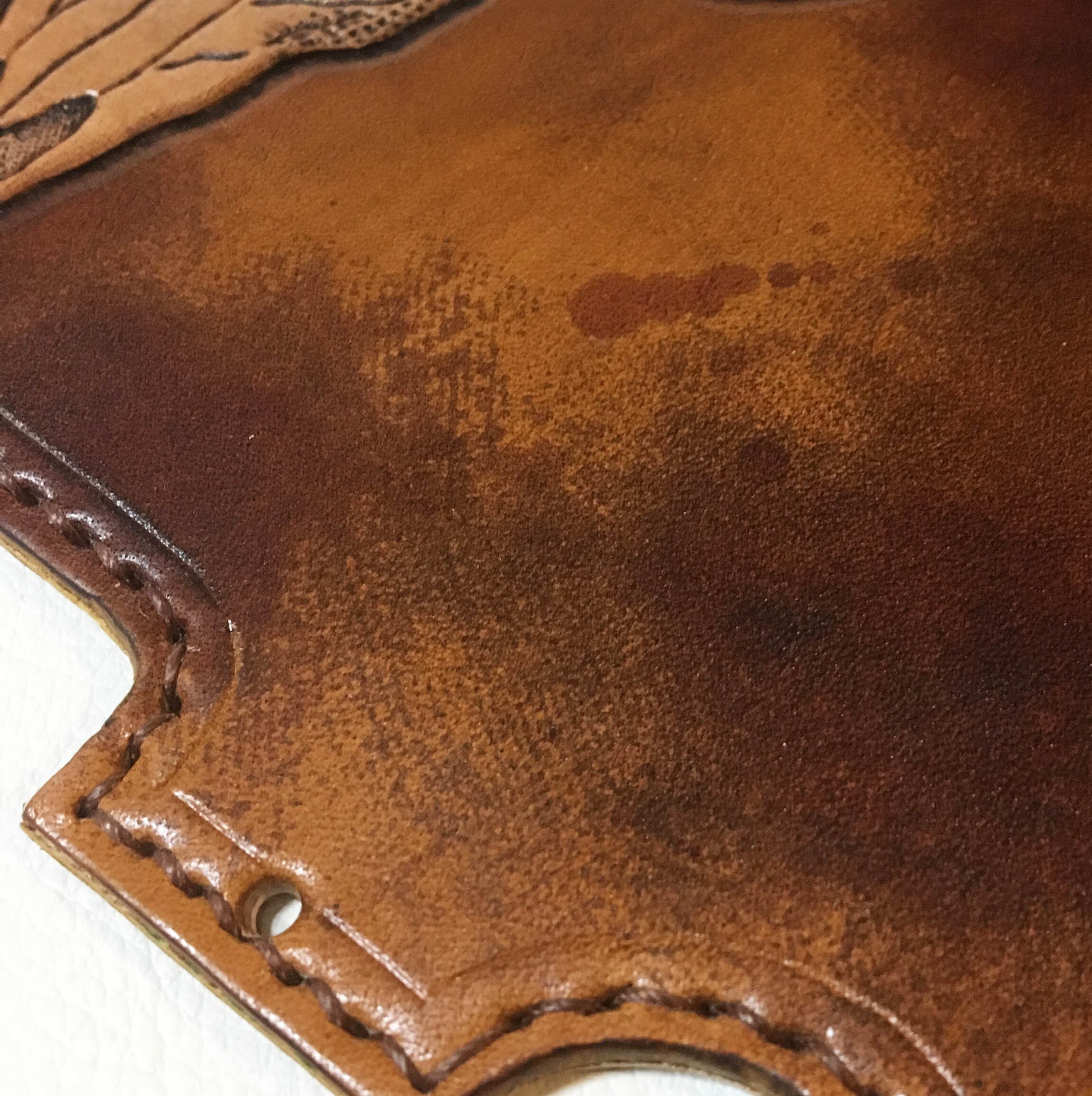 (1) 革をピックガードの型に裁断