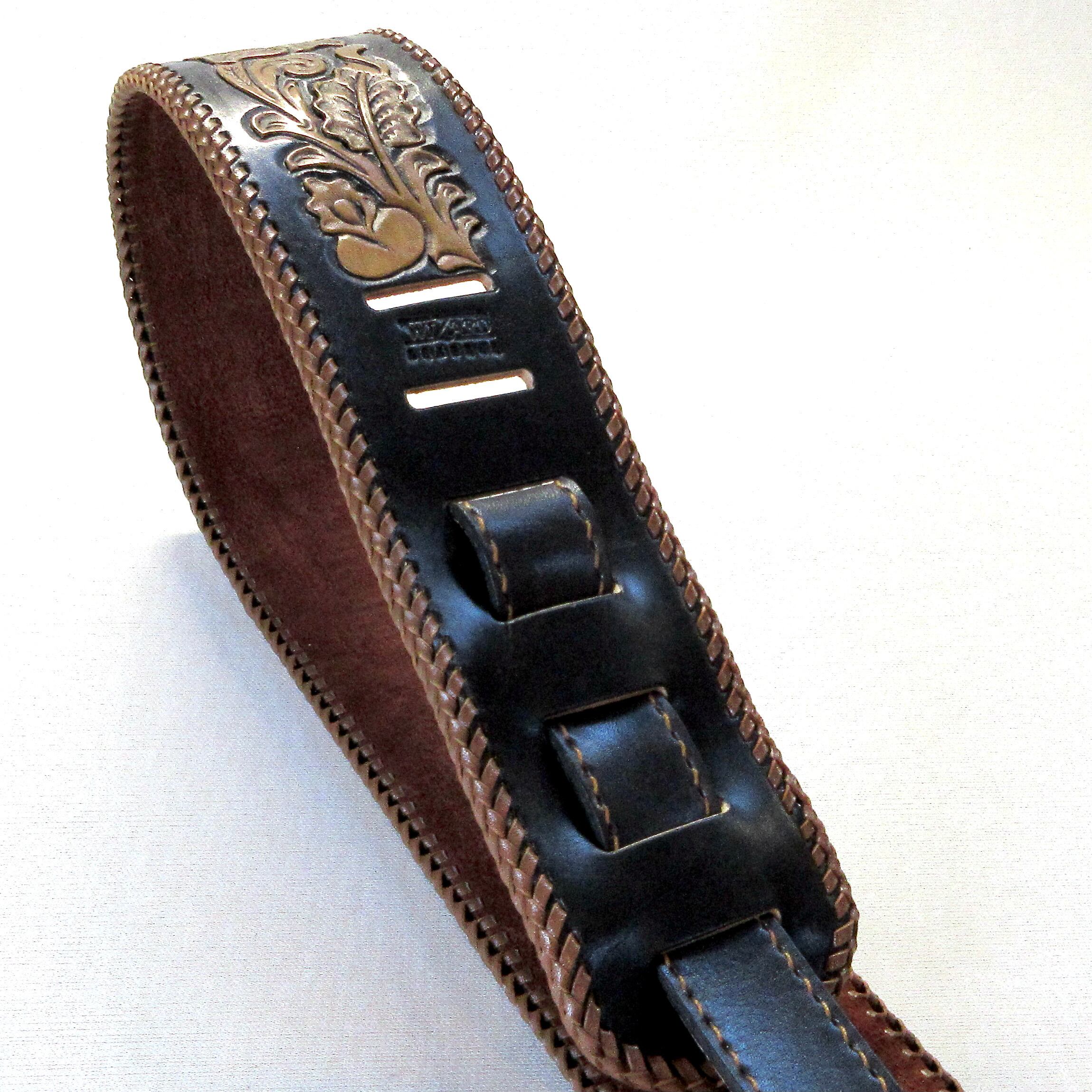 彫り込まれている図柄は、カービングという革工芸の伝統的な技法で描かれています。
