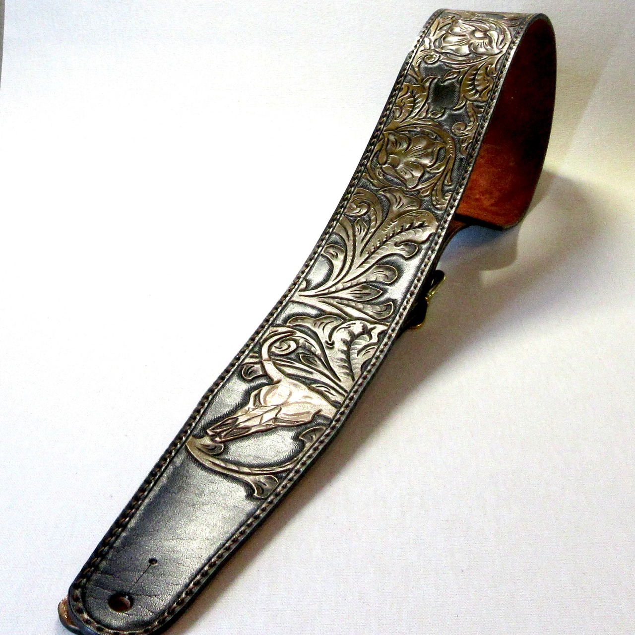 彫り込まれている図柄は、カービングという革工芸の伝統的な技法で描かれています。