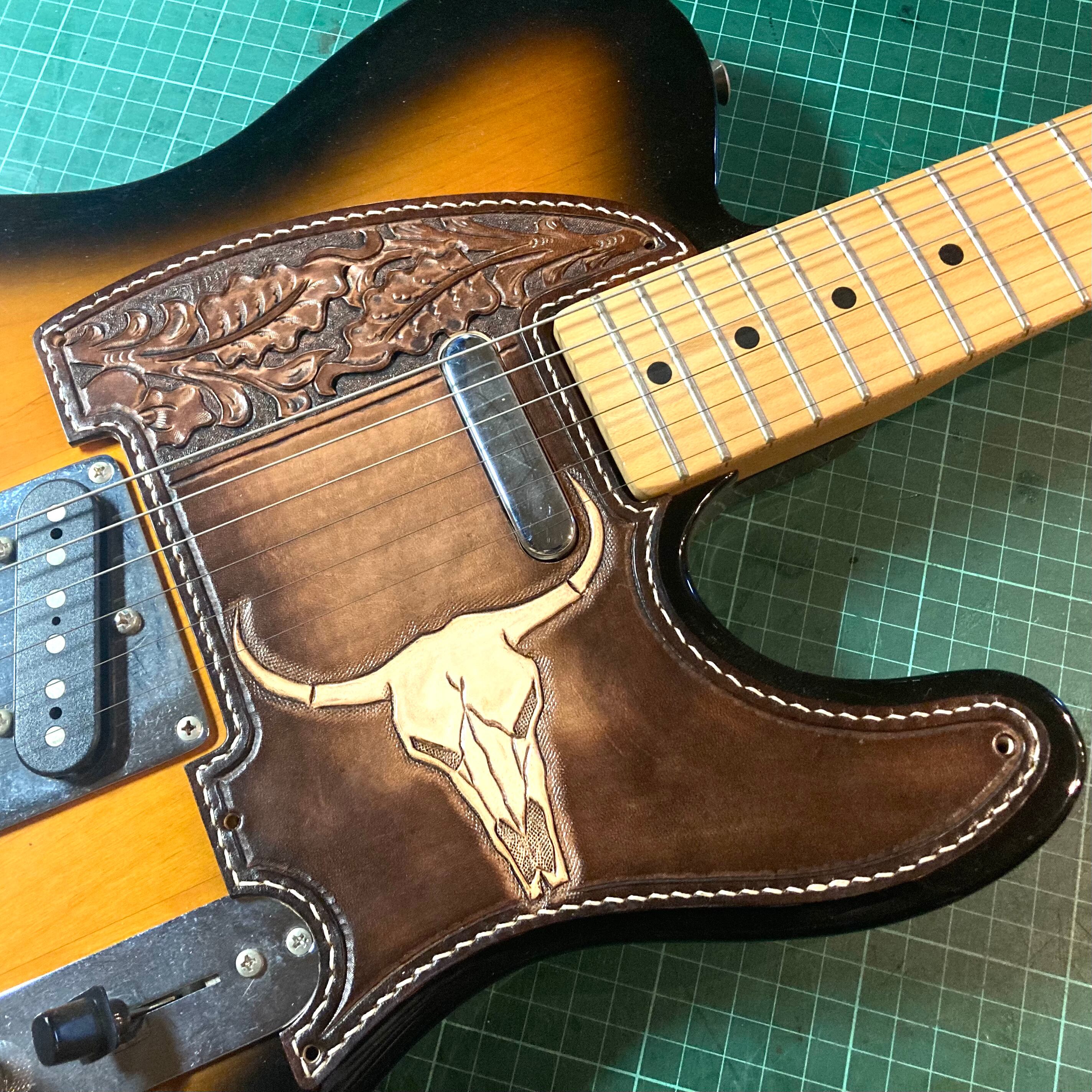 ”本革製ピックガード”という雰囲気が、より強調されます。